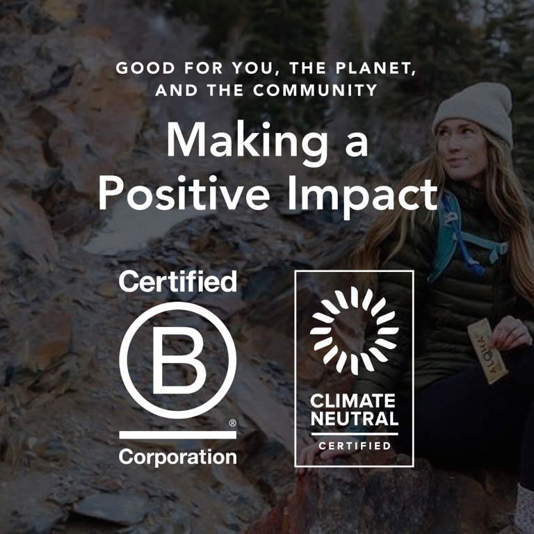 Certifications such as USDA Organic and Non-GMO Verified are common indicators of quality ingredients and ethical production practices. ALOHA is also a Certified B-Corporation, which means it meets higher standards of social and environmental performance, transparency, and accountability.