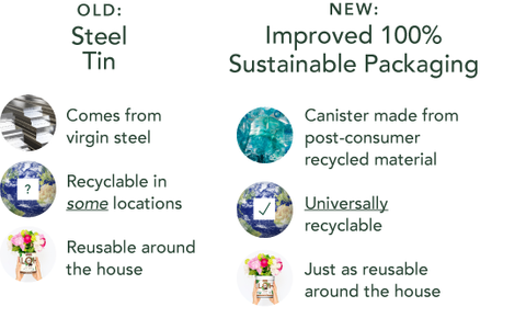 The ease and accessibility to recycling services is strongly correlated with high recycling rates. Although steel is highly recyclable, we heard from many customers who did not know how or where to recycle steel. The PCR plastics used for our protein powder canisters is HDPE (recycling symbol #2), and can be recycled at virtually every recycling facility in the United States. Recycled plastics are becoming increasingly popular in the world today versus other materials due to their universal recyclability.